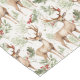 This Holiday themed table runner has a repeating pattern of watercolor antler deer images among soft greenery and red berries. The pattern is placed on a white background. Beautiful for the Christmas season, but this table runner can easily go through the autumn to spring.