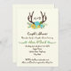 Antlers and aqua wild flowers woodland monogram wedding couples shower invitation featuring a pair of brown deer antlers and a bouquet of wild forest flowers in aqua blue, turquoise and yellow with green foliage and leaves and your initials on ivory. This modern floral, whimsical yet elegant and stylish monogrammed wedding template design is fully customizable and is part of a wedding set perfect for a spring, summer or fall woodland wedding.
