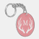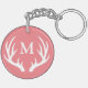 Silhouette de bois de cerf blanc et porte - clé rose monogramme blanc.