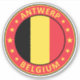 Badge of Antwerp sticker with flag of Belgium colours, rounded shape.