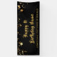 Celebrate the birthday person and/or decorate for the party with this black and gold themed banner with gold stars ideal for celebrating ANY AGE birthday for him or her. The design allows you to personalize it with your custom message (the sample text says HAPPY # BIRTHDAY NAME in a handwritten brush script font with optional additional text which can be deleted if not desired). CHANGES: Change the black background colour and/or change the text font style, size, colour or placement by clicking CUSTOMIZE FURTHER. Contact the designer via Zazzle Chat or makeitaboutyoustore@gmail.com if you’d like this design modified, on another product or would like coordinating items.
