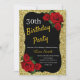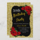 Any Age Birthday Gold Glitter Red Roses Invitation