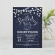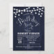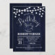 Any age rustic birthday party in navy blue and white. Features wood pattern, string fairy lights and stylish script font. Personalise with your own details. Please message us if you need further customization.