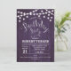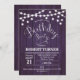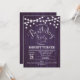 Any age rustic birthday party in purple and white. Features wood pattern, string fairy lights and stylish script font. Personalise with your own details. Please message us if you need further customization.