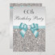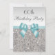Any Age Birthday Party Silver Sequins Teal Bow Invitation