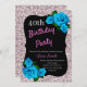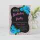 Any Age Birthday Pink Glitter Blue Roses Invitation