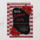 Elegant red, silver stripes glitter and red roses birthday party invitation for women of any age. The age can be changed for any age. Text can be changed to anything to fit your event. Fonts, font colour and text are completely customizable! Paper shape and type can be customized to fit your budget and taste!