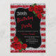 Any Age Birthday Red And Silver Glitter Red Roses Invitation