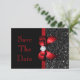 Personalized birthday party Save The Date cards. Elegant custom black and red colours double sided flat save the dates with a beautiful sparkly printed image glitter black sequins pattern, cute shiny printed red vector image bows and ribbons and pretty, stylish printed image diamonds bling jewels and gold colour customizable text on a black background. These classy glamourous, fashionable cards are decorated on both sides and printed on your choice of invitation paper. Beautiful, chic, trendy, modern double sided cards with girly glitz and glamour. PLEASE NOTE: These are flat printed graphics - not real bows, sequins or diamonds. Text, font and colours of font are all personalizable / personalisable to meet your needs. If you need assistance customizing your product please contact me through my store. I will be happy to help.