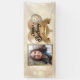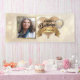 Elegant Happy Birthday party banner featuring a simple, elegant cream and gold design. Personalize it with a photo, change name and age. Can be used as a welcome banner or a party wall decoration. For best results use a portrait size photo.