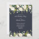 Any Age Floral Navy Blue & White Elegant Birthday Invitation