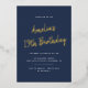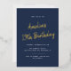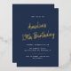 Simple birthday invitations that can be changed to any age. Dark blue and gold script.
