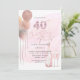 PixDezines any age, 40 in pink diamonds with rose gold balloons over watercolor. Drink pink champagne to celebrate your birthday. A luxury calligraphy added elegance for the word Birthday Party for any age. DIY numbers 1-0, enable with eye icons, copy and paste for double digits.