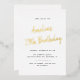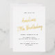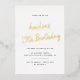 Minimalist birthday invitations that can be changed to any age. Gold script on a crisp white background.
