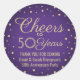 Add a personalized finishing touch to wedding anniversary thank you notes or party favours with custom purple and gold round stickers / envelope seals. The wording on this template, including "Cheers to 50 Years," is simple to customize for any year anniversary or birthday. The design features classic vintage typography, stylish modern script calligraphy, and gold faux foil confetti dots on a purple ombre background. Please note that gold is printed colour, not metallic foil. Happy Anniversary and congratulations on the milestone celebration!