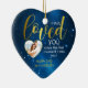 A fabulous custom photo collage Anniverary ornament. This blue space themed design is a gorgeous way to send a heart felt wedding anniversary message. Fill out the heart with a favourite photo. A stylish blue and gold personalized design they are sure to love.