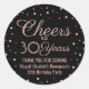 Add a personalized finishing touch to birthday party thank you notes or favours with custom pink and black round stickers / envelope seals. All text is simple to customize or delete. This template is set up for a 30th birthday for her, but can easily be changed to another year or event, such as an anniversary. Design features pink rose gold faux foil confetti dots on a black background, stylish script calligraphy "Cheers to 30 years," and modern minimalist typography customizable message at bottom. Please note that pink is printed colour, not metallic foil.
