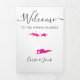 Welcome guests to your wedding with this tri-fold card. There is plenty of room to include your itinerary, restaurant suggestions, things to do, and contact info. There is space for a photo on the back of the card. All text may be customized, including the heading. You may edit the colours for any part of this design, as well as move the heart to the location of your wedding. To change colours, click personalize and then "edit using the design tool." Select the element you wish to edit, then use the tools to make the changes.