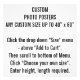Any Custom Size Photo Posters to Personalize. Choose your own size. Customizable dimensions. Maximum 40" x 60". Minimum 4" x 4". DESIGN YOUR OWN: Fully customizable Photo Poster Print Enlargements. Add your own words, text, image and personalize your photo posters. CHOOSE YOUR OWN CUSTOM SIZE PHOTO POSTER: Choose a custom size from 4" x 4" up to 40" x 60". Just click the drop down "Size" menu above "Add to Cart". Scroll to bottom of Menu. Then click "Choose your own size". Enter height and length required. Create your own customisable, personalised photo poster print gifts and products for a birthday, for Christmas, for marketing and promotional use, or simply for your home or yourself. Add your own text, name, words, pattern, motif, monogram (monogramme), image or personal design. Various standard and custom frame options available for your photo prints posters.