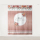 Elegant rose gold floral Photo backdrop tapestry with area for your name(s) and your event. Ideal for weddings, bridal and baby showers, brunch, birthdays and anniversaries. Faux rose gold glitter background and gorgeous hand painted watercolor border on top with flowers and foliage in a mixture of blush pink, dusty rose, peach, ivory, slate cloudy dusty blue, grey and sage green tones. Hand written Script details. Name(s) and event text surrounded by circular rings with floral bouquets. Coordinating invitations and variety of event products available. Part of our "Ethereal in Blush Pink" wedding and events collections.