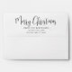Add a stylish touch to holiday cards with custom black and white return address envelopes. The greeting on this template is simple to personalize to any wording, such as Merry Christmas, Happy Holidays, Seasons Greetings, or Happy New Year. As an option, change the greeting to your name, and use the rest for the return address only. The modern minimalist design features trendy script calligraphy and elegant classic typography. Stylish customized envelopes add a beautiful detail to Christmas cards and holiday party invitations.