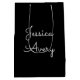 Any Name | Cool Editable White Script on Black Medium Gift Bag