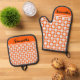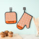 Any Name Cute Floral Daisy Pattern Oven Mitt & Pot Holder Set. Features orange and white daisy pattern. A fresh, happy look with cute daisies to brighten your day. Add your choice of name for a truly personalized touch.