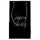 Any Name | Elegant Editable White Script on Black Small Gift Bag