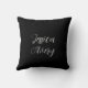 Any Name | Elegant Editable White Script on Black Throw Pillow