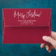 Add a chic modern touch to holiday cards with stylish custom red and white return address envelopes. The greeting on this template is simple to personalize to any wording, such as Merry Christmas, Happy Holidays, Seasons Greetings, or Happy New Year. As an option, change the script typography greeting to your name, and use the rest for the address only. The design features trendy handwritten calligraphy and modern minimalist name and address. Elegant customized envelopes add a beautiful detail to Christmas cards and holiday party invitations.
