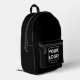 Any Shape Business Logo Custom Text on Black Printed Backpack