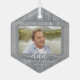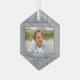 Any Text 1 Photo Memorial Gray Faux Wood Hexagon Glass Ornament
