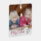 Celebrate the simple joys of the holidays with a custom 2 photo overlay square metal ornament. Pictures and all text on this template are easy to customize and can be different or the same on front and back. It can include any wording, such as Merry Christmas, Happy Holidays, Best Friends, kids & family names, etc. (IMAGE PLACEMENT TIP: An easy way to position a photo exactly how you want is to crop it before uploading to the Zazzle website.) The festive red, white and black and design features chic trendy handwritten script calligraphy, simple modern minimalist typography names & year, and two photos of your choice. This unique keepsake adds a stylish touch to Xmas home decorations. Merry Christmas!