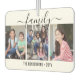 Celebrate the simple joys of family and friends with a unique heart-shaped 4 photo collage car air freshener. Pictures and text are simple to customize. (IMAGE PLACEMENT TIP: An easy way to centre a photo exactly how you want is to crop it before uploading to the Zazzle website.) Design features a black and white modern minimalist layout, elegant handwritten style script typography, and four pictures of your choice. Include any text such as name, year, or favourite motivational or inspirational quote. It's easy to make it yourself. This template is set up for a family with kids, but can easily be personalized for a baby, wedding couple, best friends, grandparents, pets, etc. You can design your own stylish keepsake gift idea for a hard to buy for person. Makes a cool and cute addition to automobile interior decor.