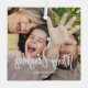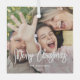 Celebrate the simple joys of the holidays with a script typography photo overlay square glass ornament. The picture and all text on this template are easy to personalize. Customize with any wording, such as Merry Christmas, Happy Holidays, My First Xmas, Best Friends, kids & family names, etc. The black and white design features trendy modern brushed script calligraphy, simple minimalist typography names & year, and one photo of your choice. This unique keepsake adds a stylish touch to Xmas home decorations. Merry Christmas!