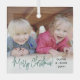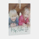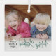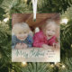 Celebrate the simple joys of the holidays with a script typography photo overlay square glass ornament. The picture and all text on this template are easy to personalize. Customize with any wording, such as Merry Christmas, Happy Holidays, My First Xmas, Best Friends, kids & family names, etc. The festive green, white and black and design features chic trendy handwritten script calligraphy, simple modern minimalist typography names & year, and one photo of your choice. This unique keepsake adds a stylish touch to Xmas home decorations. Merry Christmas!