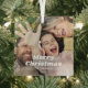 Celebrate the simple joys of the holidays with a retro typography photo overlay square glass ornament. The picture and all text on this template are easy to personalize. Customize with any wording, such as Merry Christmas, Happy Holidays, My First Xmas, Best Friends, kids & family names, etc. The overall aesthetic of this design is elegant and modern with a bit of vintage flair. It features groovy bold retro typography, simple minimalist style names & year, and one photo of your choice. This unique keepsake adds a stylish touch to Xmas home decorations. Merry Christmas!