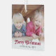 Celebrate the simple joys of the holidays with a retro typography photo overlay square glass ornament. The picture and all text on this template are easy to personalize. Customize with any wording, such as Merry Christmas, Happy Holidays, My First Xmas, Best Friends, kids & family names, etc. The festive red, white and black and design features groovy vintage typography, simple modern minimalist names & year, and two photos of your choice. This unique keepsake adds a stylish touch to Xmas home decorations. Merry Christmas!