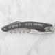 SCREW IT - LET'S DRINK! Funny Drinking Quote Wine Corkscrew / Beer Bottle Opener with Knife. Simple modern grey and white design with text that can be customized or deleted. Personalized text can be different or the same on each side. Use a favourite quote, name, important date, or add a note such as Happy Birthday, Congratulations, Happy Anniversary, Happy New Year, etc. Fun host or hostess gift for a party or as a wedding favour for guests, family or bridal party.