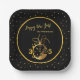 Any Year Happy New Year's Black Gold Clock Paper Plate