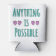 A charming and uplifting design featuring the inspirational phrase "Anything is Possible" in soft light teal, accented with two sets of delicate pink hearts to spread positivity and love.