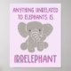 Love elephants? Than you'll have to agree that anything not related to elephants is irrelephant. With its funny play on words message and its cute cartoon elephant illustration this poster is perfect for elephant fans.