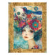 *** Designed to delight the imagination, this artwork showcases NATURE with various FLOWERS and a BOHO WOMAN WITH HEAD COVERED with FLOWERS and a BIRD.