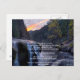 This beautiful apache wedding blessing, which starts with "now you shall feel no rain. with a beautiful forest rivers flowing down stream you can see a small waterfalls and the river behind it with the forest tree line going away from you and a orange line in the sky from the sun setting.