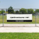 You can edit the text to show a custom message such as the website for your apartment community. Additional text is near the bottom of the banner so that you can provide additional information. (Shown: Now Leasing) All text can be edited or deleted. The banner is black and whilte.