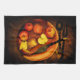 Stillleben mit Äpfel, Holzteller und Eisenbesteck