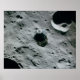 The Apollo 16 Command and Service Modules (CSM), as seen from the Lunar Module (LM, out of view) above terrain on the lunar farside. The two spacecraft had just undocked. The LM and CSM were out of communication at the time of this photograph's exposure, but shortly acquired the signal as they moved separately to the earth side of the moon.