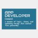 This app developer geek definition sticker is perfect for coders and software developers who love programming humour. A must-have gift for techies, IT professionals, or computer science students. Great for laptops, phones, or office desks.