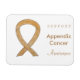 Appendix Cancer uses an amber ribbon to support awareness for its cause. The custom magnet features an amber awareness ribbon art magnet with the message "Support Appendix Cancer Awareness". The amber awareness ribbon art can be customized with personalized messages to make great cause merchandise magnets for fundraisers, awareness gifts, or other special cause events or occasions.