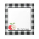 This rustic style notepad has a border of black and white buffalo check plaid and a watercolor apple graphic on the lower left with a name to personalize. Makes a great gift for teachers!